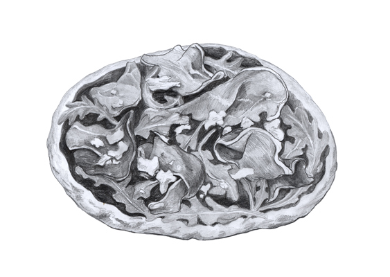 Salaterne - til tider anrettet i flere lag, fungerede perfekt som det nødvendige bindeled mellem kødpålæg og farverig pynt.